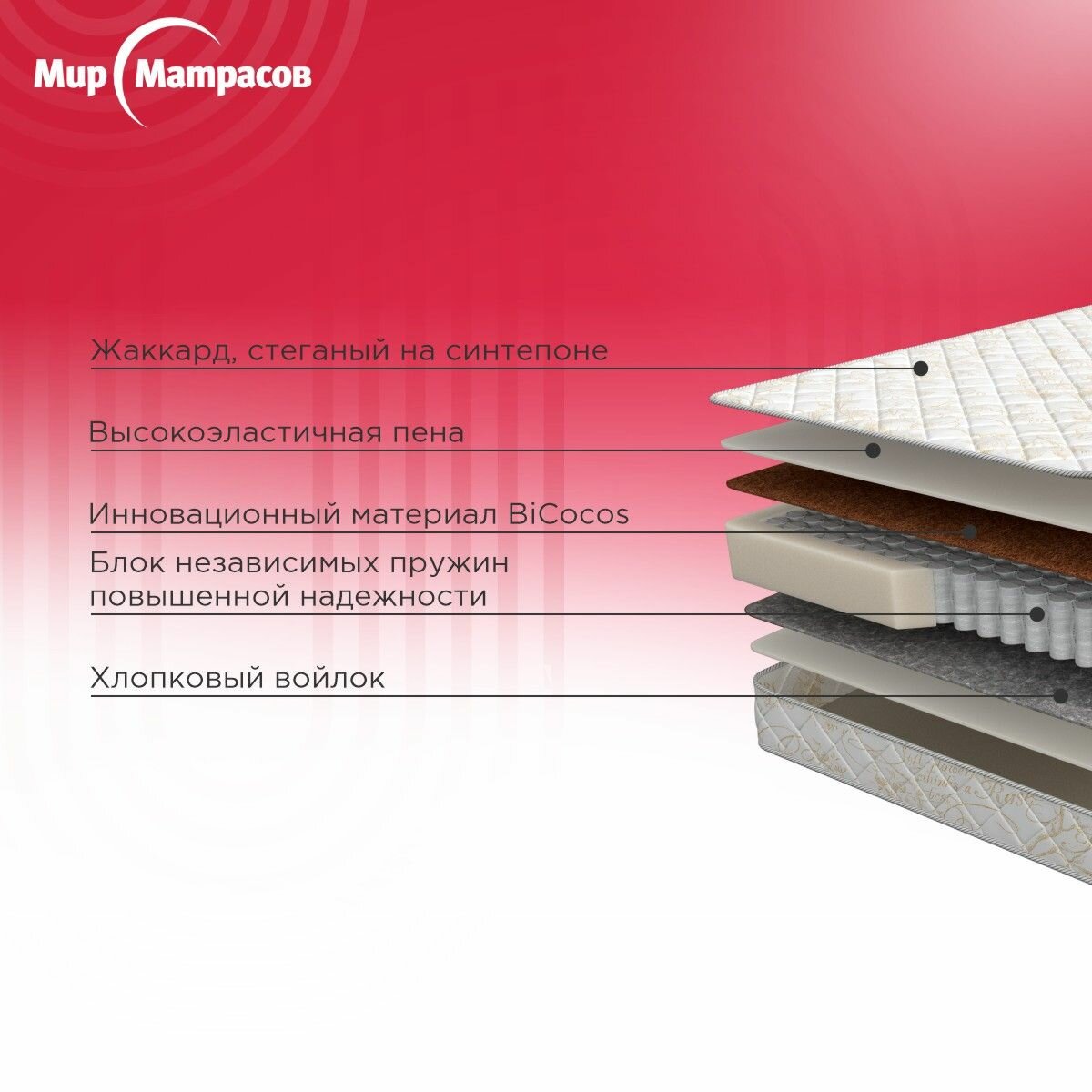 Фабрика Сна Матрас EDMOND, независимые пружины, кокос, средняя жесткость, анатомический, 90х200 см