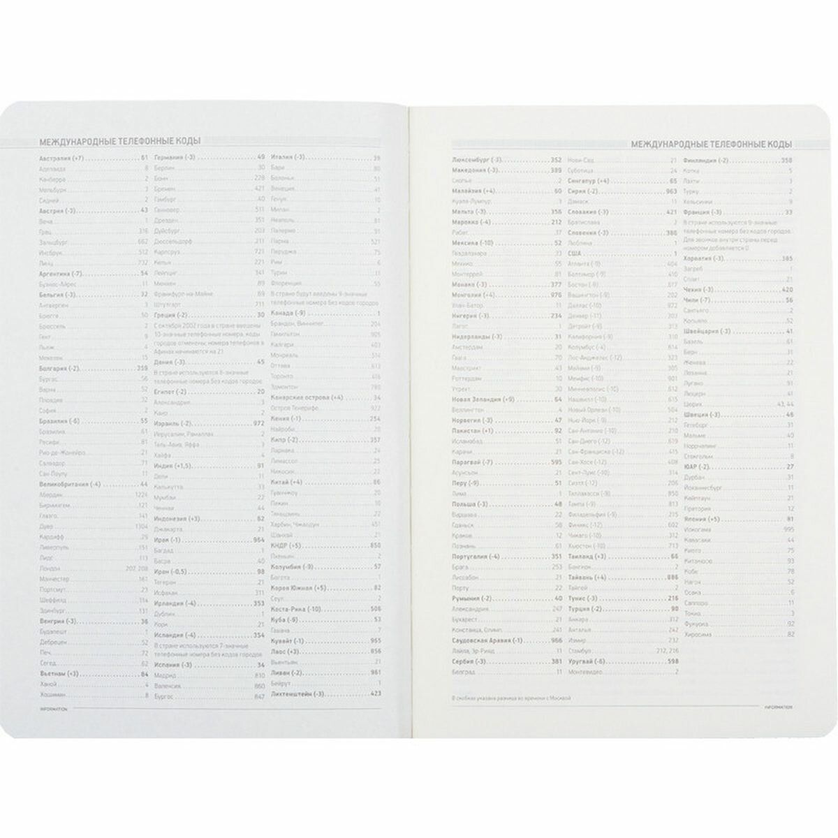 | Дополнительная информация | Без полей;Доп. горизонтальные линии;Справочная информация;Закругленные углы;Телефонная книга; вес 337 г |