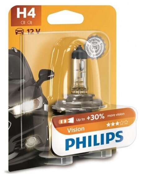 Отзывы на Лампа галогенная Philips H4 Vision 12V 60/55W, 1 шт, 12342PRB1