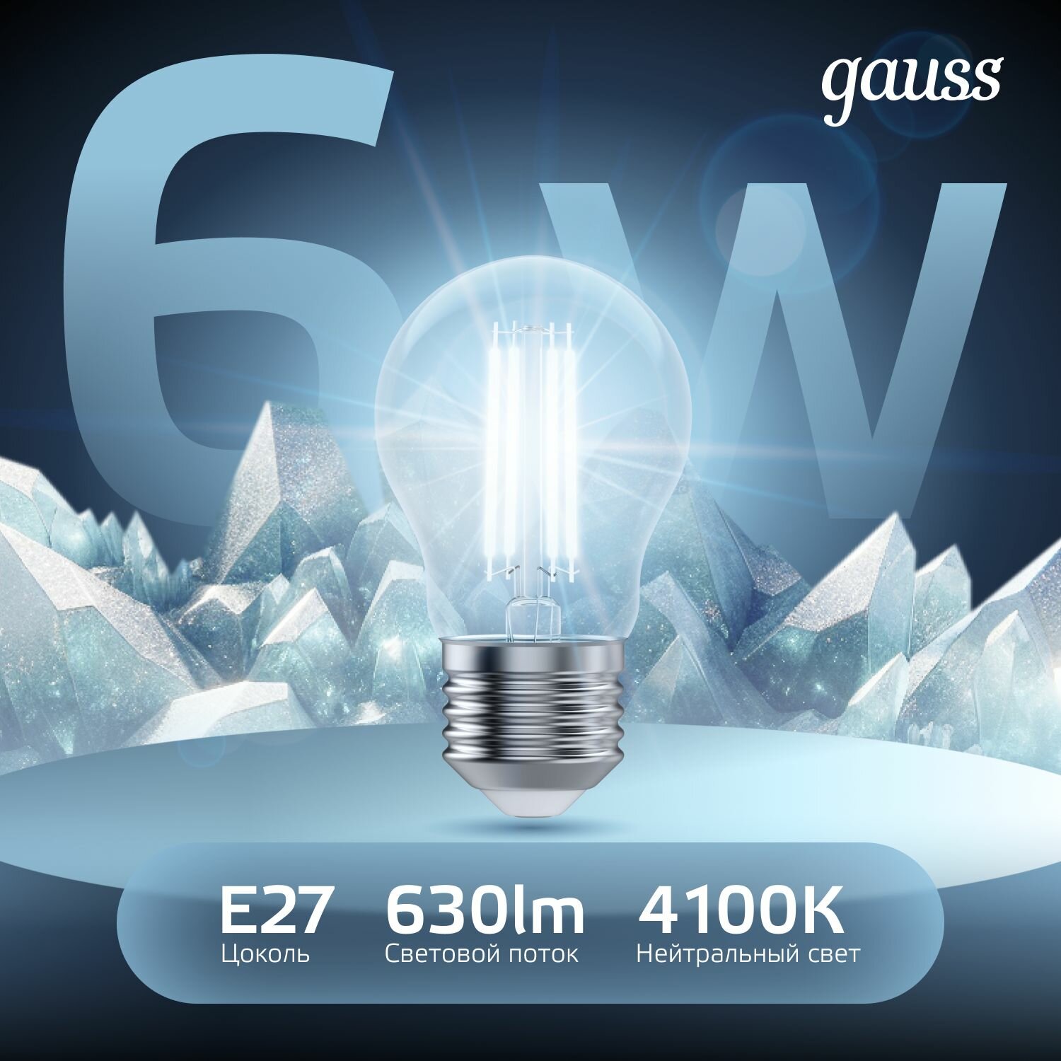 (6 шт.) Светодиодная лампочка Gauss A60 6Вт 150-265В 4100К E27 филамент. 1 912 ₽