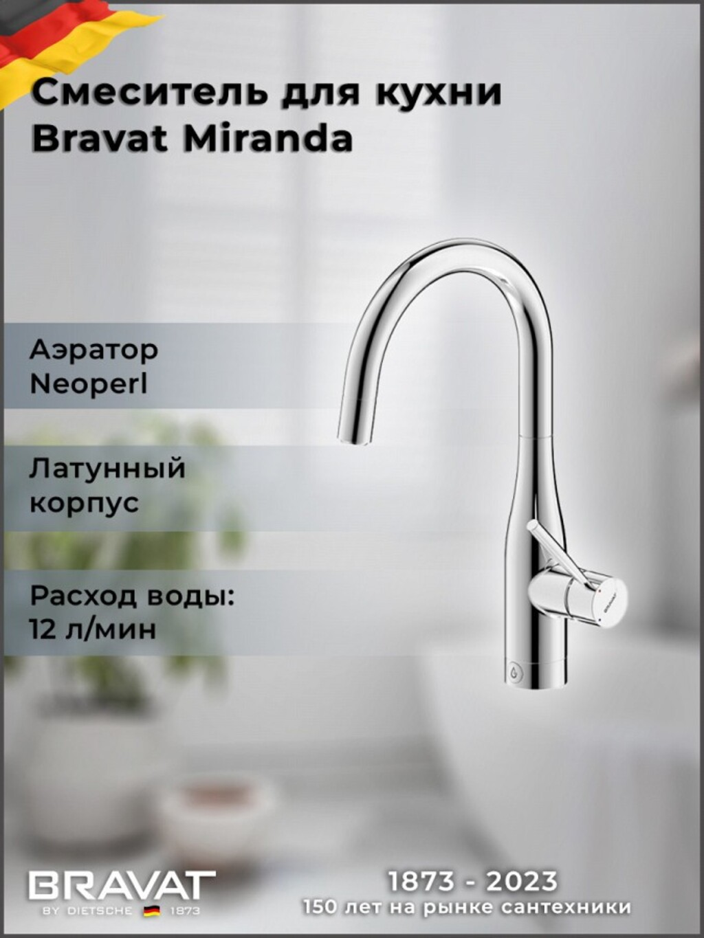 Смеситель Bravat "Miranda" F7164208, для кухни, латунь, хром информация: