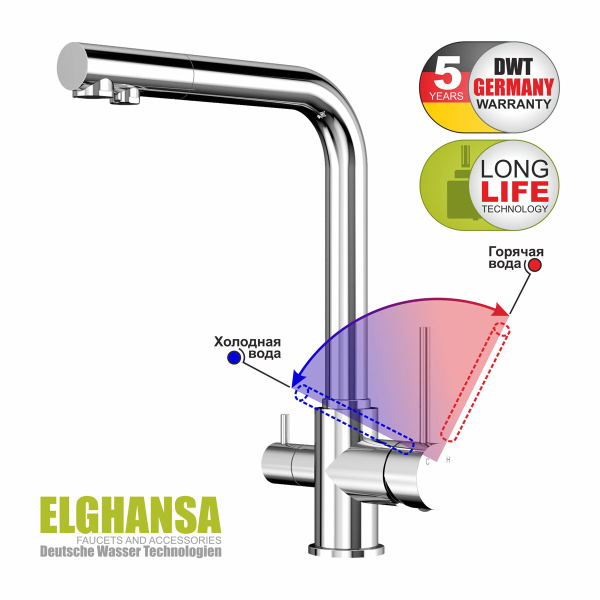 Смеситель для кухни с фильтром для питьевой воды Elghansa 56A5216, хром.