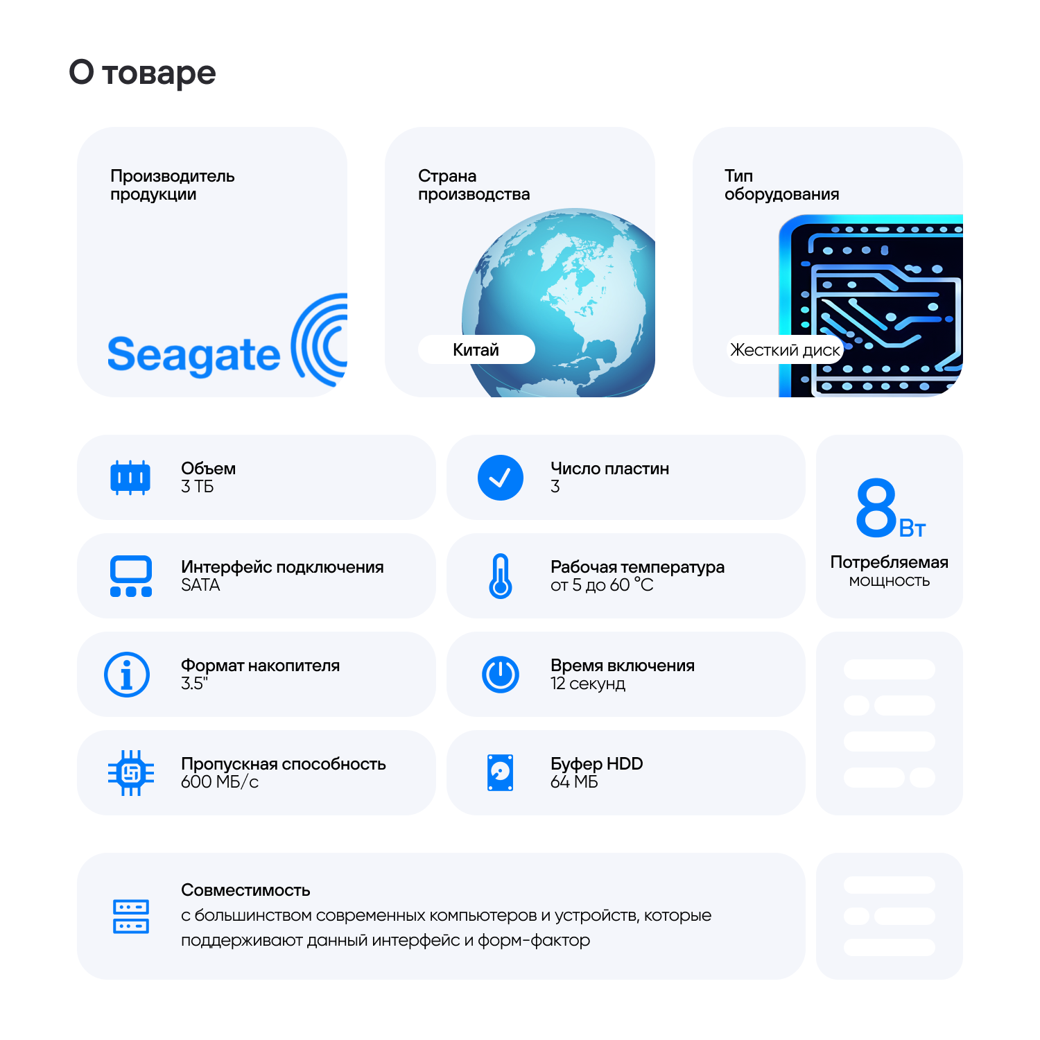 Жесткий диск Seagate ST3000DM001 3.5" 3 ТБ ST3000DM001-1CH166 аналог WD30EZRX информация: