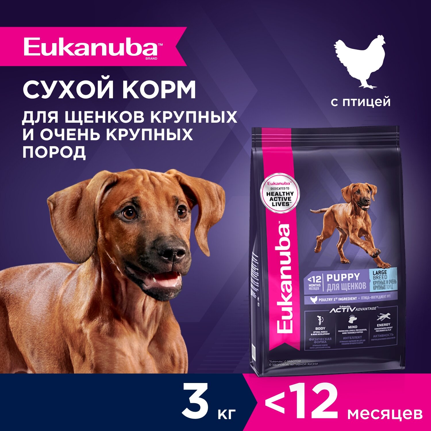 EUKANUBA PUPPY & JUNIOR LARGE BREED для щенков крупных пород (3 кг)