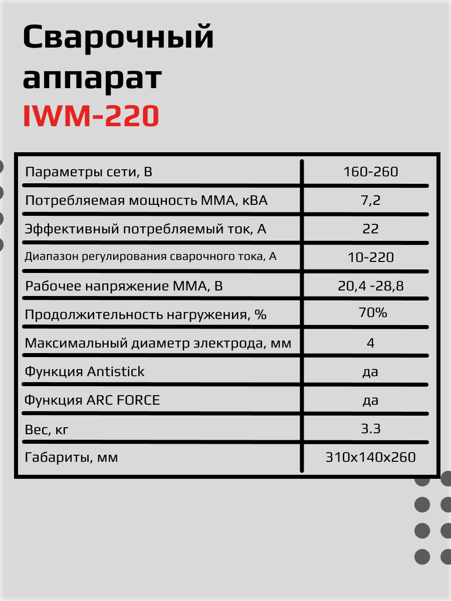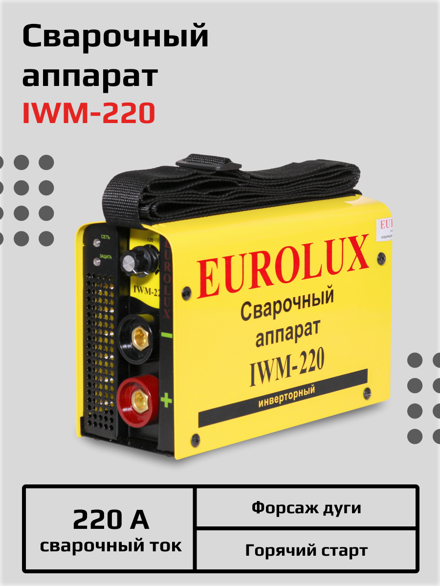 Сварочный аппарат инверторный IWM220 Eurolux, ММА, 10-220А, 7.2 кВт информация:
