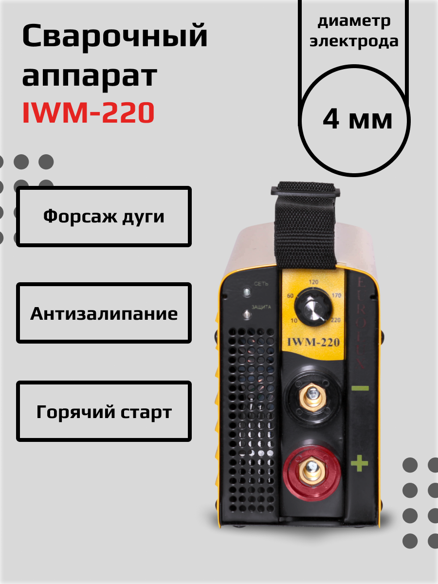 10 цен на Сварочный аппарат инверторный IWM220 Eurolux, ММА, 10-220А, 7.2 кВт