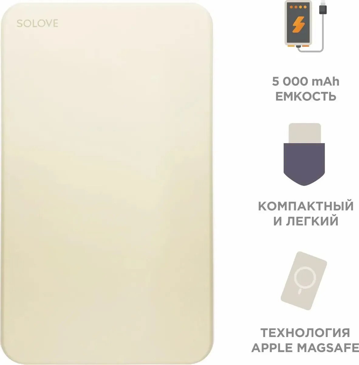 Внешний аккумулятор Solove W9, 5000 мАч, 3 А, MagSafe, быстрая зарядка, бежевый