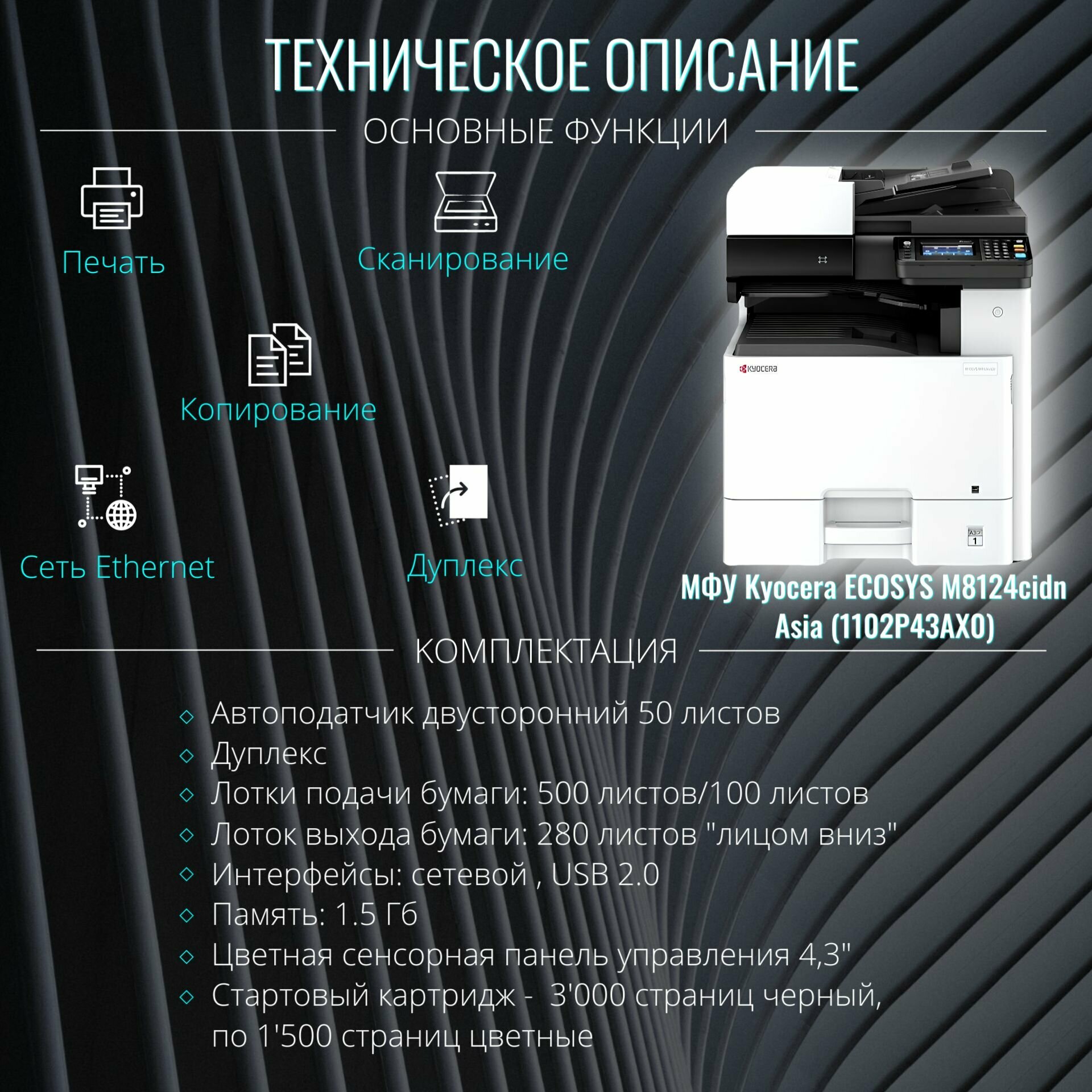 МФУ лазерное Kyocera ECOSYS M8124cidn цветная печать А3 (1102P43AX0). Азиатская версия. Тонер TK-8110. информация: