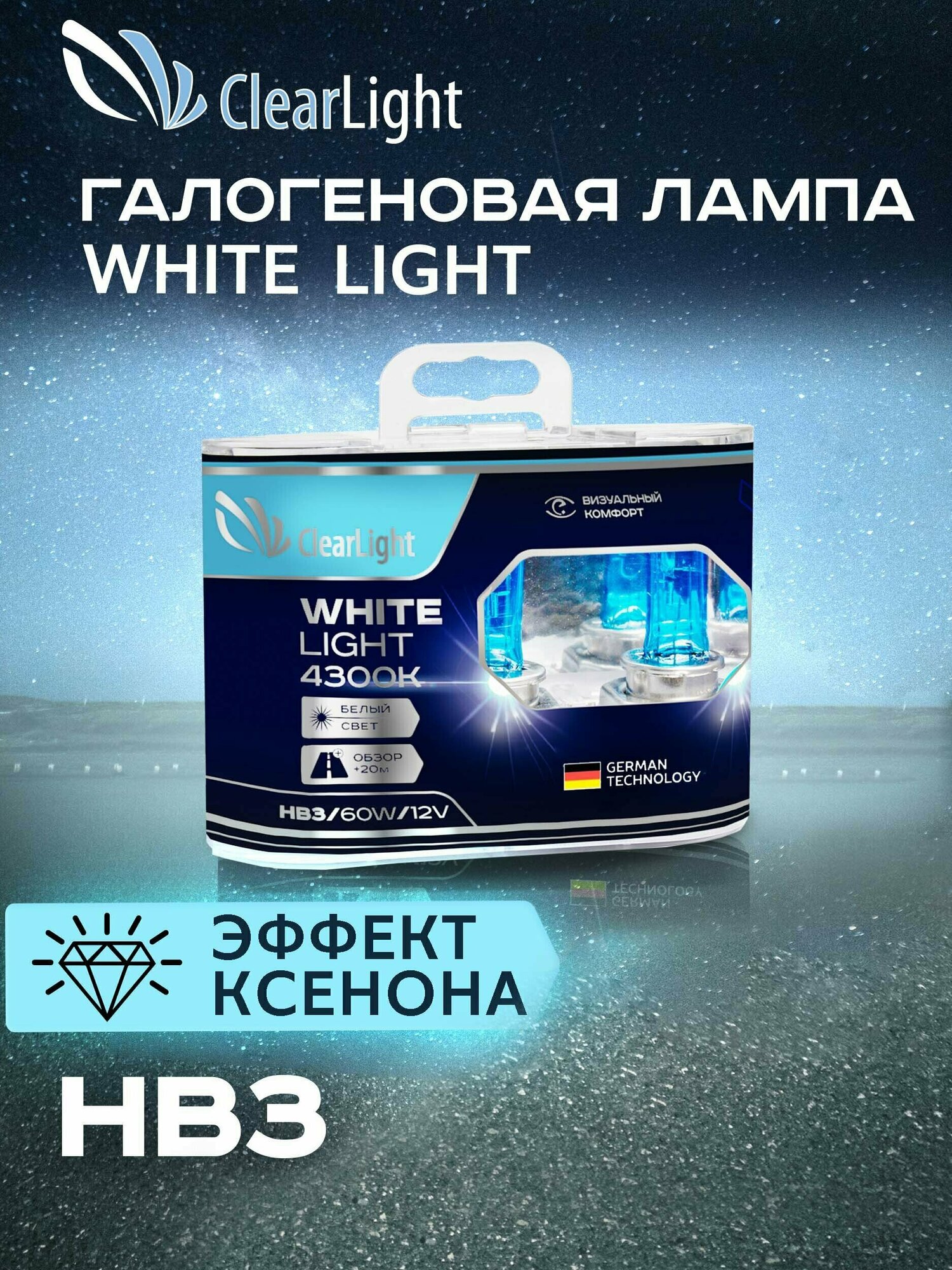 Галогенные лампочки Clearlight WhiteLigh HB3 4300K 12V-60W 2шт