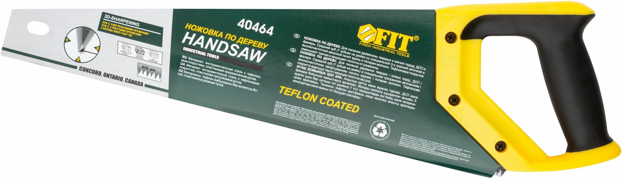 Ножовка по дереву FIT 40464 , средн.кален.зуб 7 ТPI, 3D заточка, пласт.прорезинен.ручка, тефлон.покрытие 400 мм