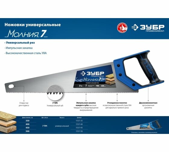 Ножовка универсальная пила Зубр "МОЛНИЯ-7" 350 мм, 7 TPI информация: