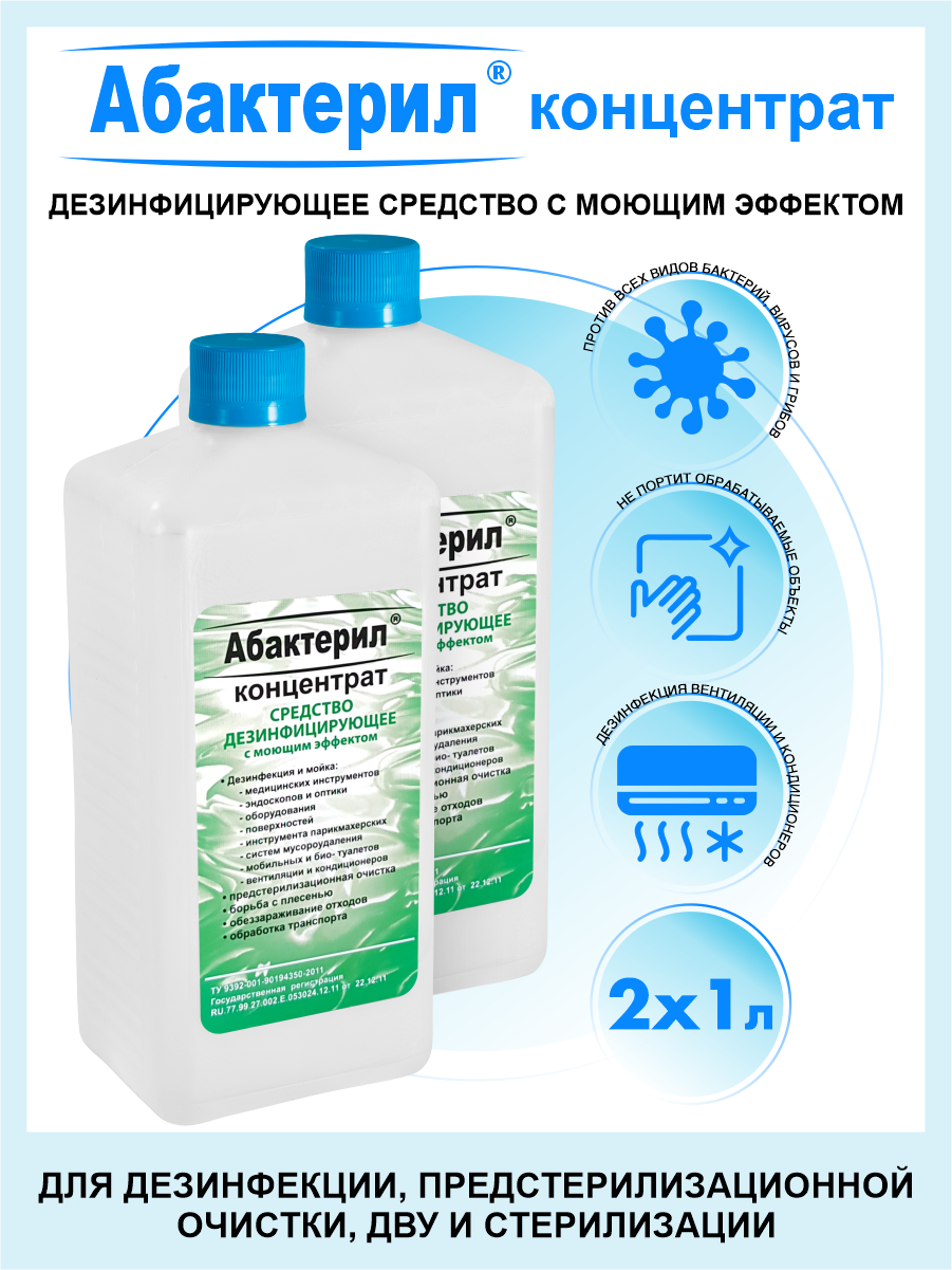 Комплект Дезинфицирующее средство Абактерил 1 литр х 2 шт. информация: