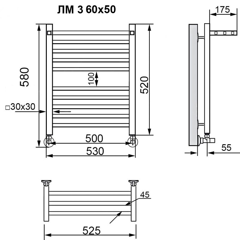 Полотенцесушитель водяной Ника Modern ЛМ 3 80 x 50 см, с полкой информация: