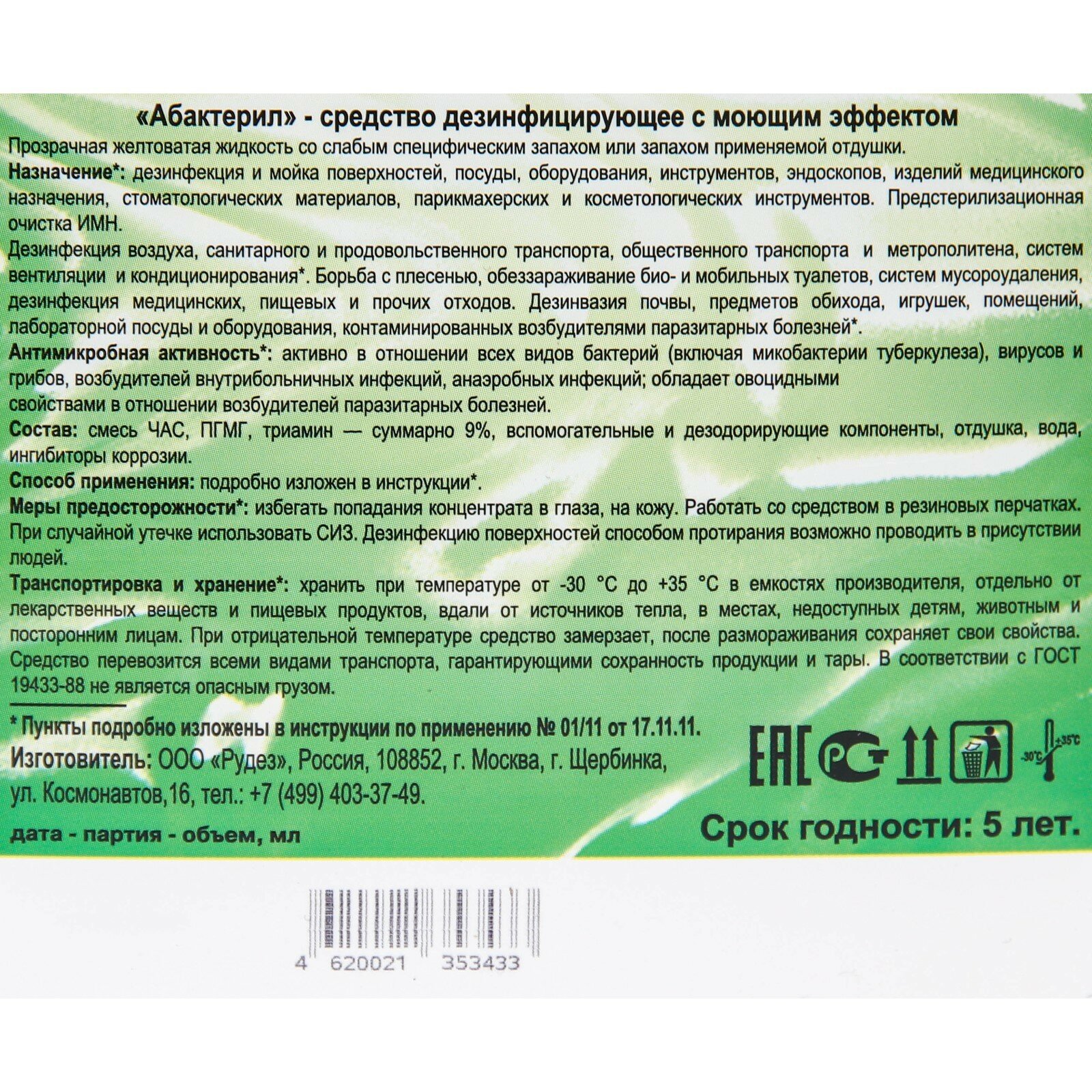 5 шт. Абактерил 1 л. Концентрат ГОСТ 12.1.007-76