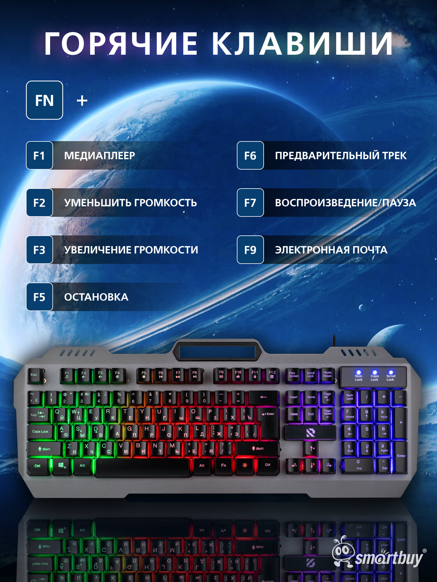 Игровая клавиатура с подсветкой Smartbuy, алюминиевый корпус информация: