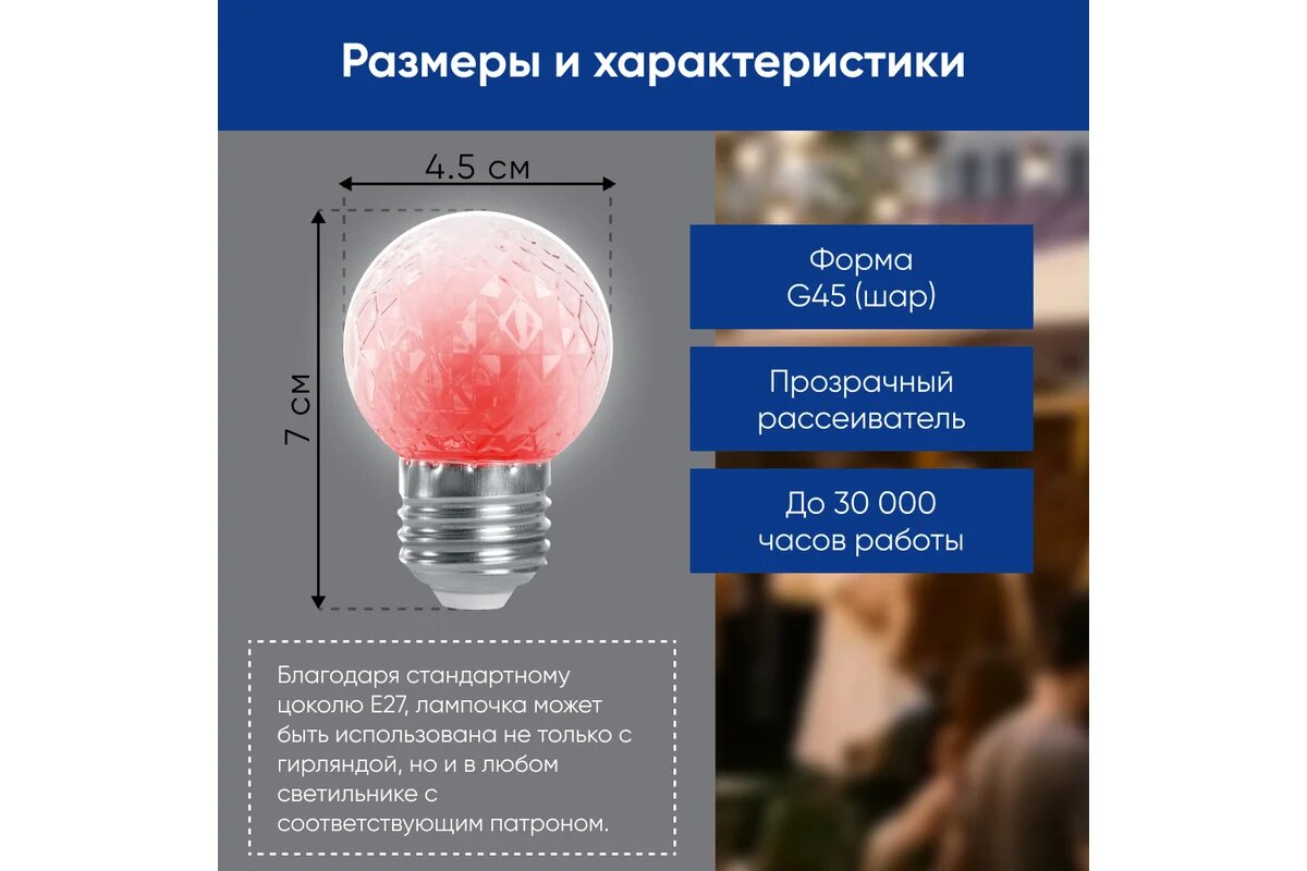 Лампа-строб FERON LB-377 Шарик прозрачный E27 1W красный 38210 информация: