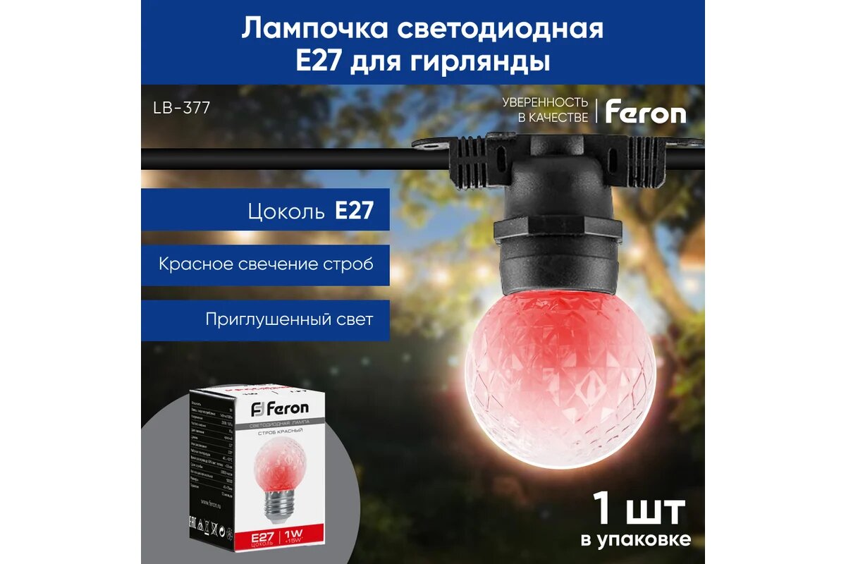 10 цен на Лампа-строб FERON LB-377 Шарик прозрачный E27 1W красный 38210