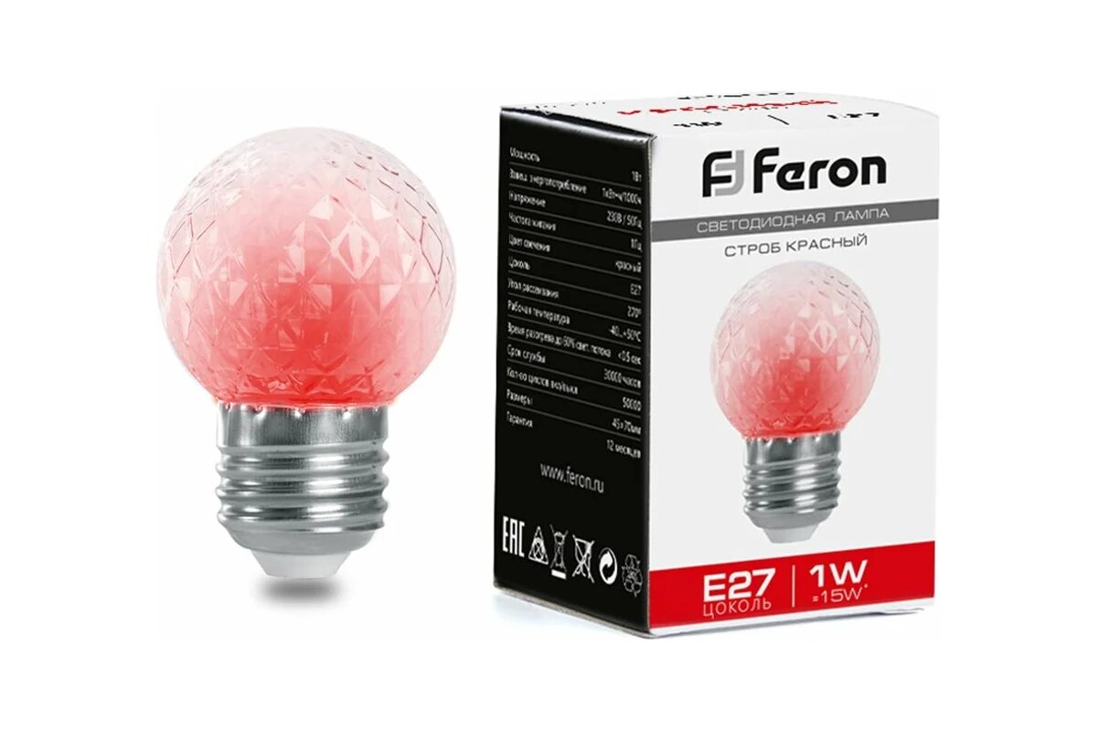 Отзывы на Лампа-строб FERON LB-377 Шарик прозрачный E27 1W красный 38210