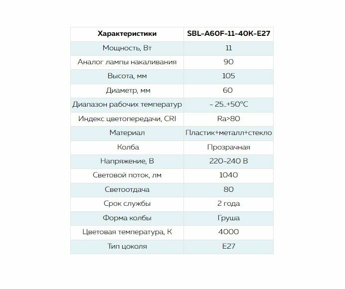 Светодиодная лампа FIL E27 11Вт (SBL-A60F-11-40K-E27) дневной, упаковка 5 шт. информация: