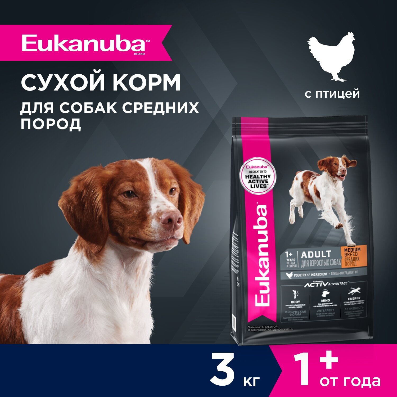 Сухой корм EUKANUBA ADULT MEDIUM BREED для взрослых собак средних пород с птицей (3 кг)