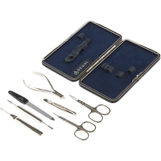 Маникюрный набор DEWAL серии "Современная классика" 7 предметов, футляр натуральная кожа, цвет синий (905BLUE)