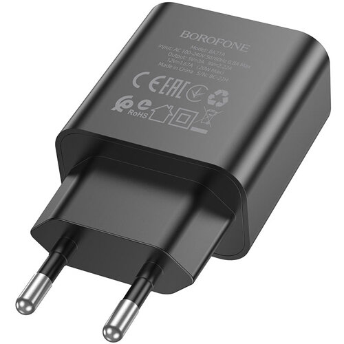 10 цен на Сетевой адаптер питания USB-C Borofone BA71A Black зарядка 3.0А PD20W - б/п черный