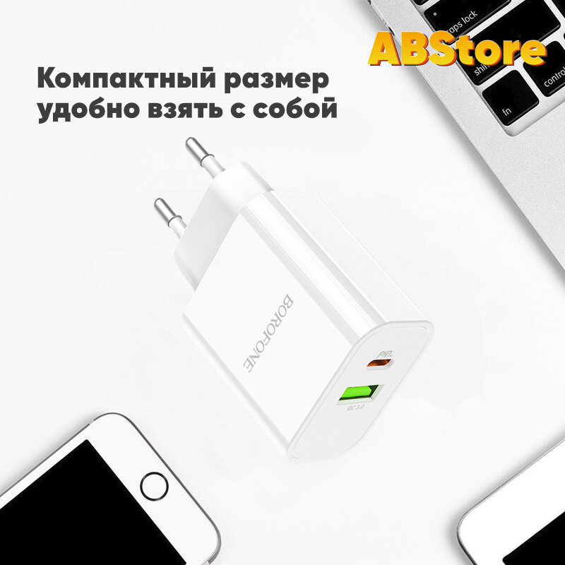 Отзывы на Сетевое зарядное устройство USB QC 3.0 + Type C Power Delivery Borofone BA55A белый