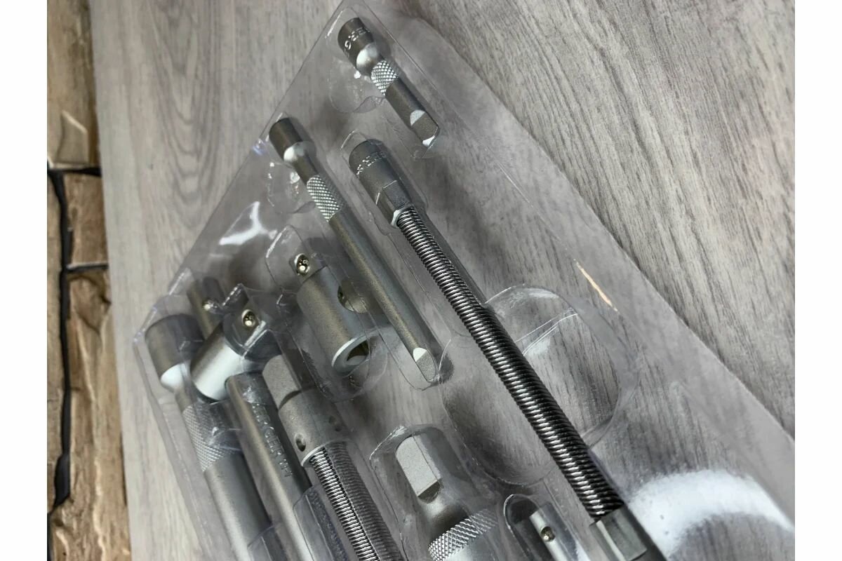 | Дополнительная информация | 1/2": удлинитель: 50, 250 мм, вороток Т-образный: 250 мм, гибкий удлинитель: 200 мм, кардан шарнирный: 77 мм, переходник скользящий:44 мм; 1/4": удлинители: 50, 100 мм вороток Т-образный: 110 мм, гибкий удлинитель: 150 мм, кардан шарнирный: 38 мм |