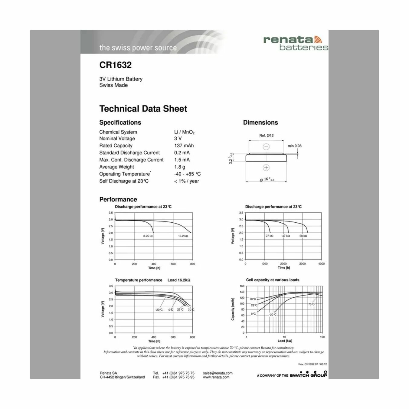 Батарейка литиевая RENATA CR1632 дисковая 3В бл/1 информация: