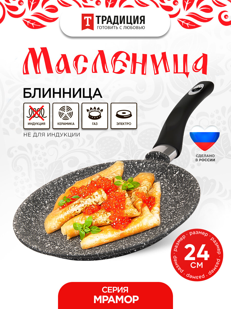 Сковорода для блинов 24см Мрамор ТМ Традиция готовить с любовью информация: