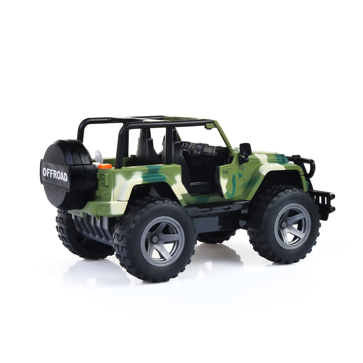 Машинка "Джип" (зеленый цвет), пластмассовая, инерционная,1:16, световые и звуковые эффекты, 27x14x15,5см
