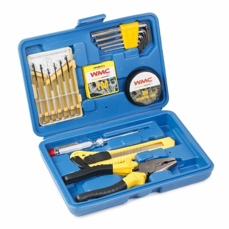 | Инструменты в комплекте | отвёртки / плоскогубцы / отвёртки для точных работ / ключи имбусовые (шестигранные) / нож / Изолента / рулетка метровая / индикаторная отвертка |