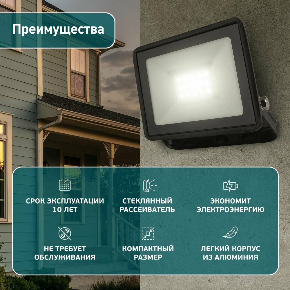 Прожектор светодиодный уличный ЭРА LPR-023-0-30K-020 подвесной 20Вт 3000K 1600Лм черный информация: