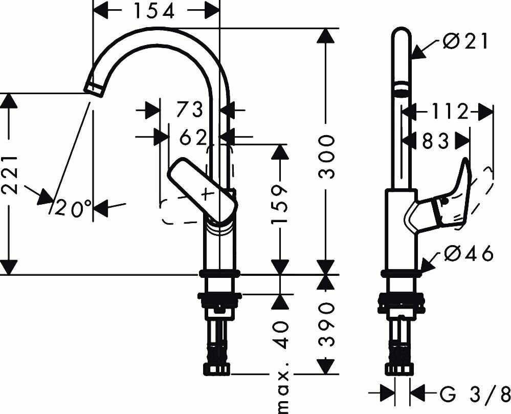 | Длина излива | 154 мм |