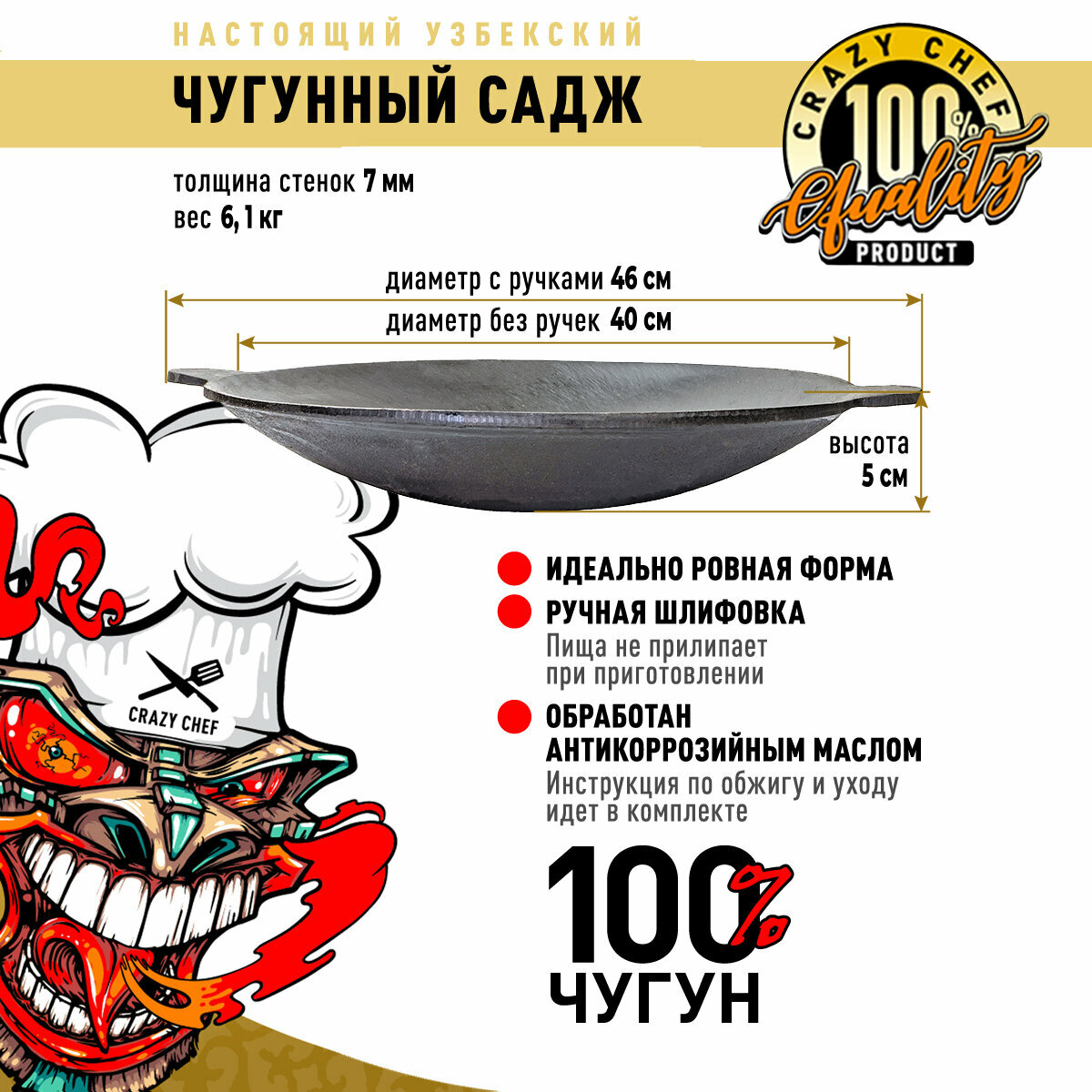 | Дополнительная информация | Важно соблюдать требования по уходу за чугунной посудой чтобы избежать образования ржавчины |