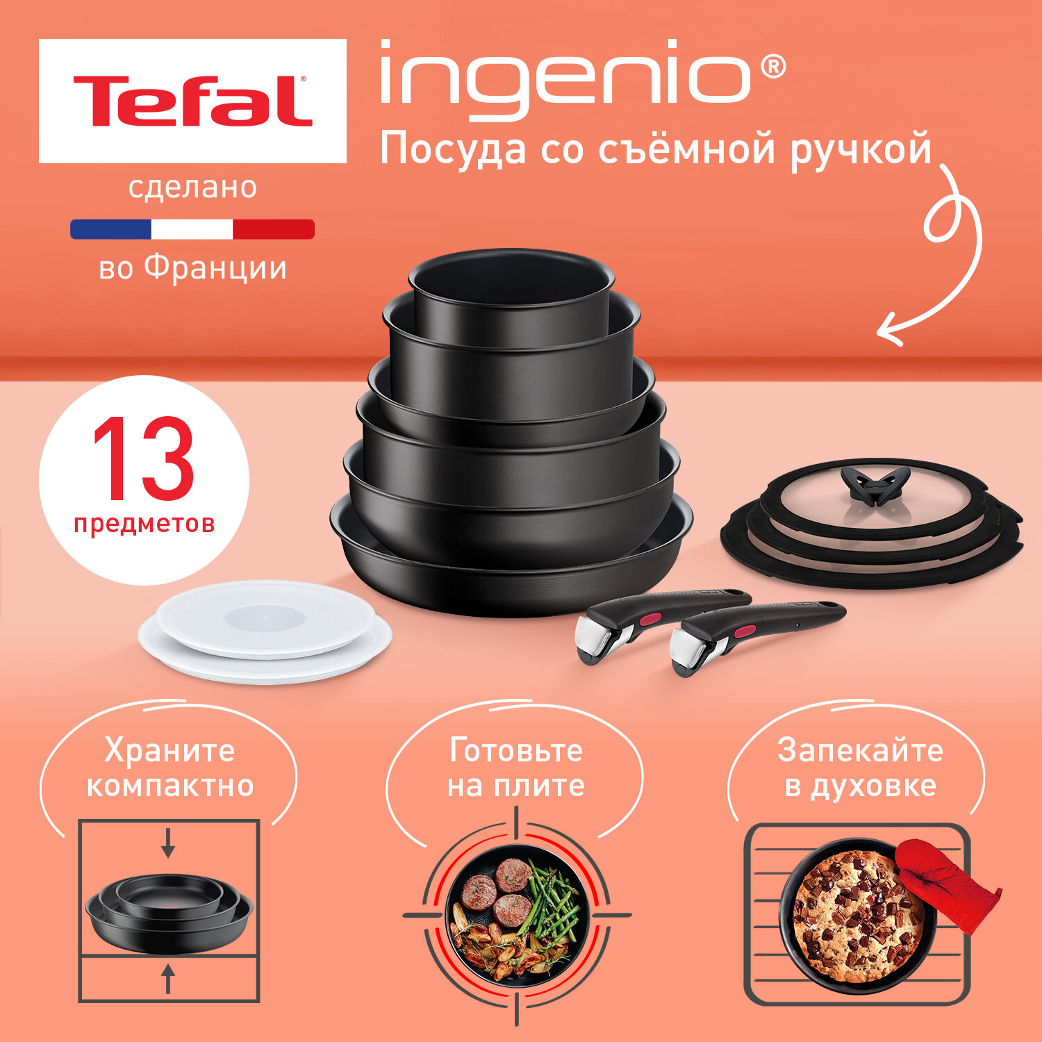 10 цен на Набор посуды Tefal Ingenio Unlimited со съемной ручкой, подходит для всех типов плит, включая индукционные, Франция