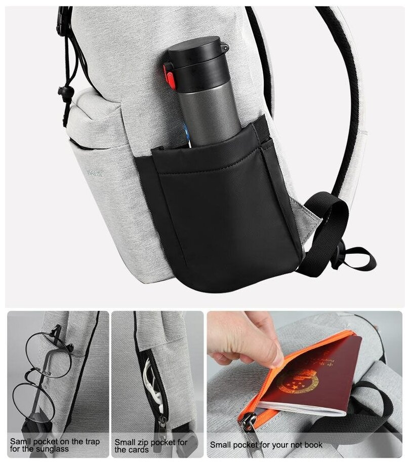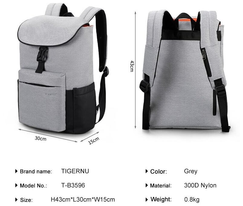 Рюкзак Tigernu T-B3596, серый, 15,6", водоотталкивающий, для ноутбука информация: