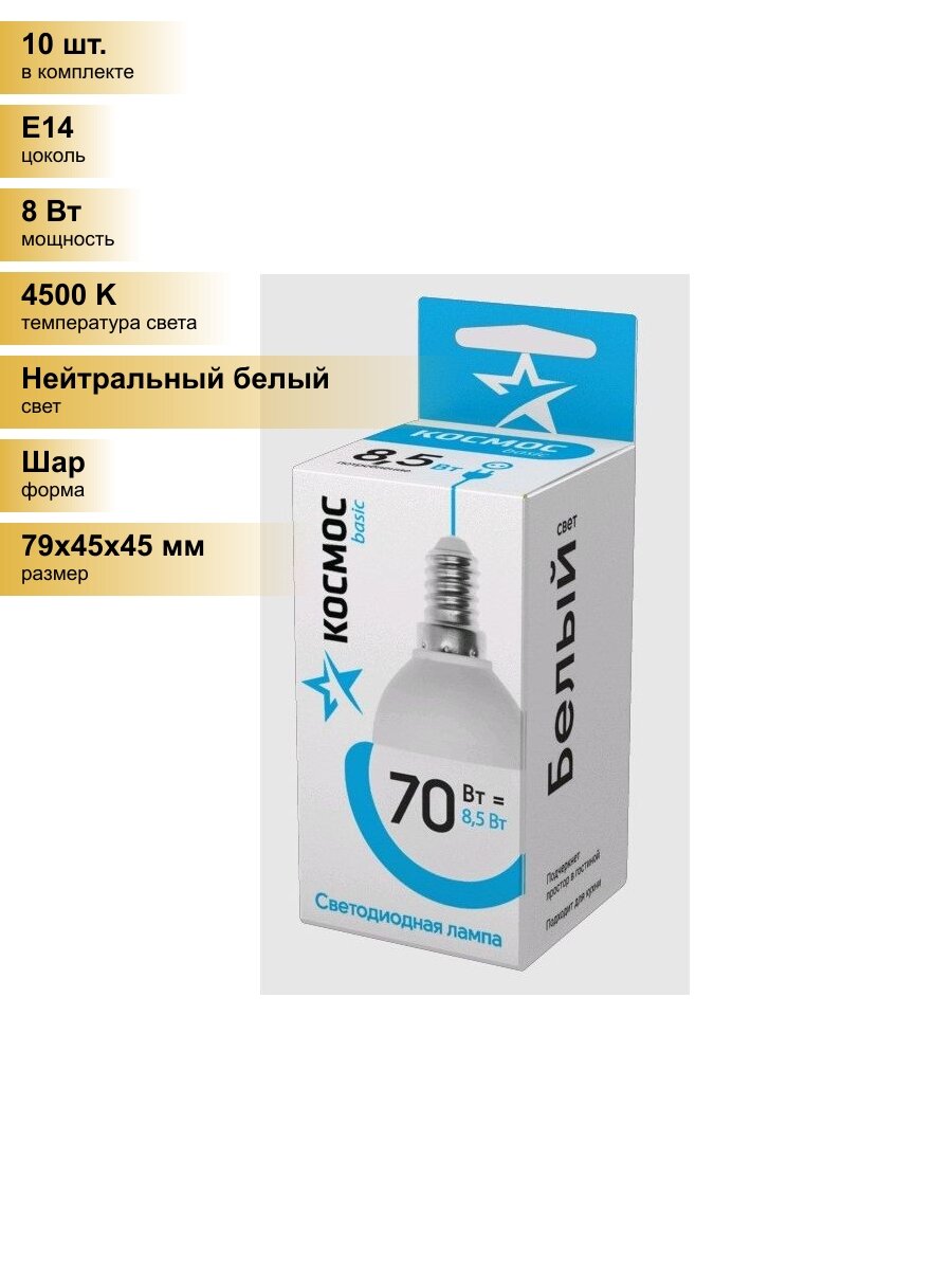 (10 шт.) Светодиодная лампочка Космос шар E14 8,5W (8W) (740lm) 4500K 4K матов. 79x45 LkecLED8.5wGL45E1445 Нейтральный белый. Цоколь E14 информация: