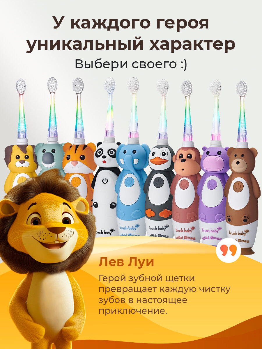 10 цен на Звуковая электрическая зубная щетка Brush-Baby Sonic Лев 0-10 лет