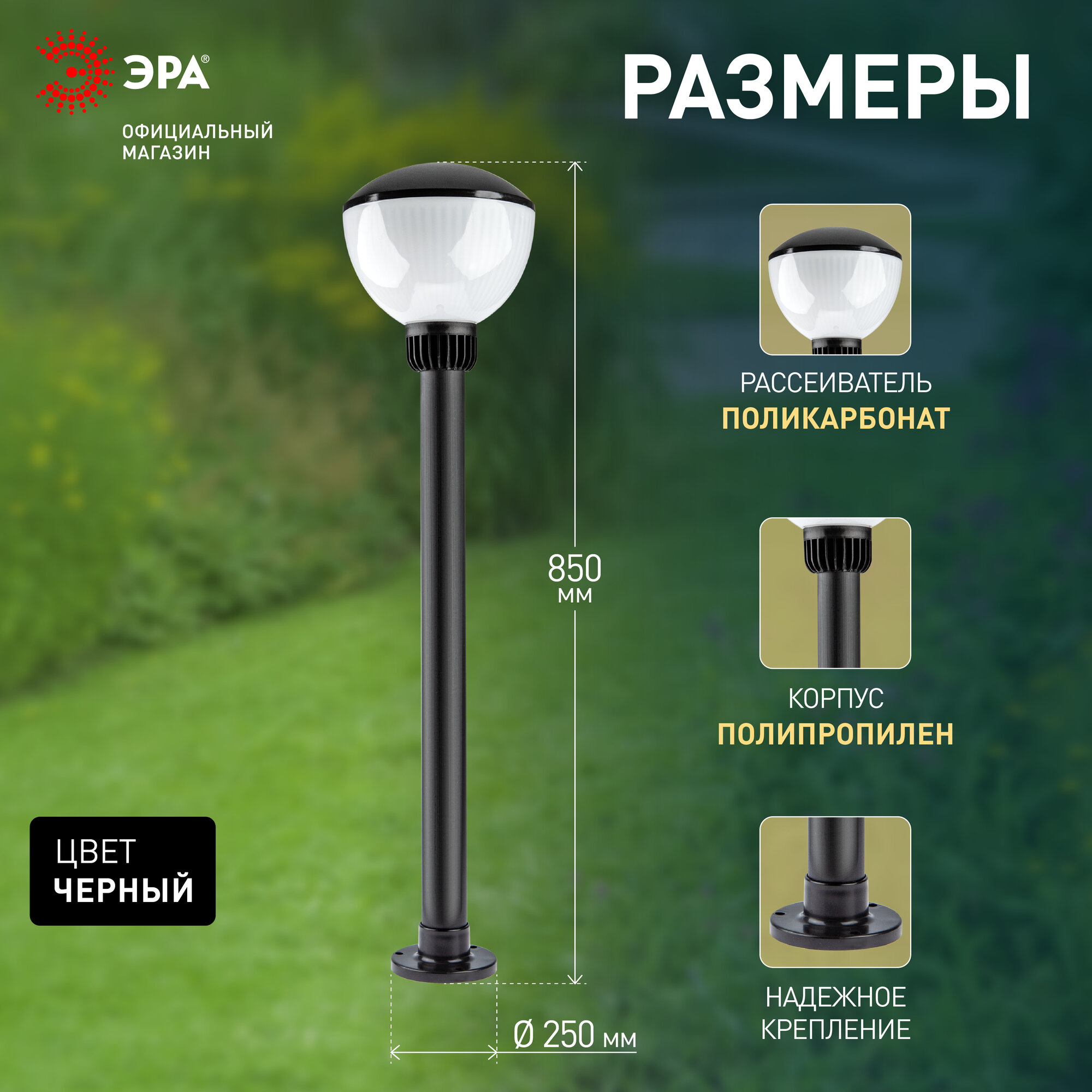 Отзывы на Светильник уличный напольный ЭРА НТУ 01-75-002 "Аква" черный 250х850mm, Е27