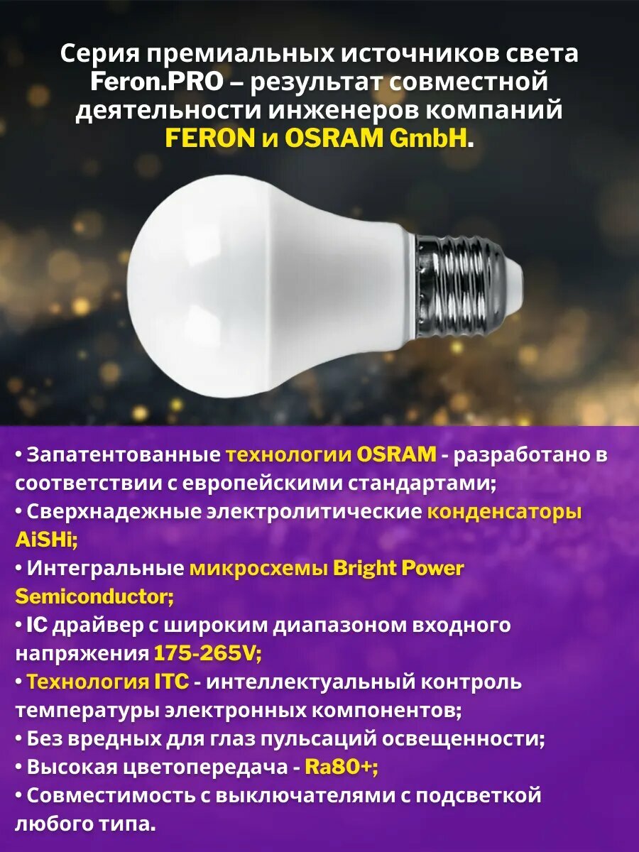 Лампа светодиодная LED 9вт Е27 белый Feron.PRO | код 38027 | FERON ( 1шт )