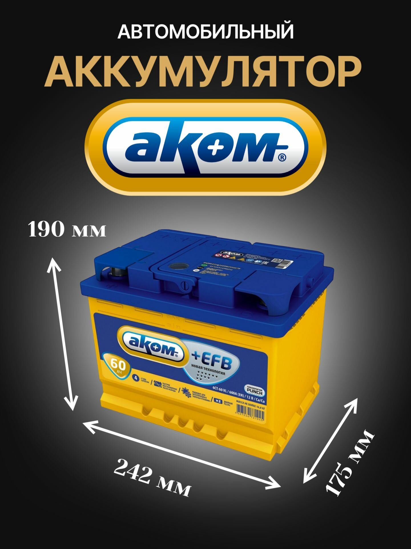 10 цен на Аккумулятор автомобильный АКОМ + EFB 60 L+ 12В 60Ач 600А