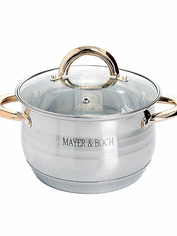 Отзывы на Кастрюля нержавеющая сталь со стеклянной крышкой 2,8 л, для всех видов плит, в т. ч. для индукционных, Mayer&Boch