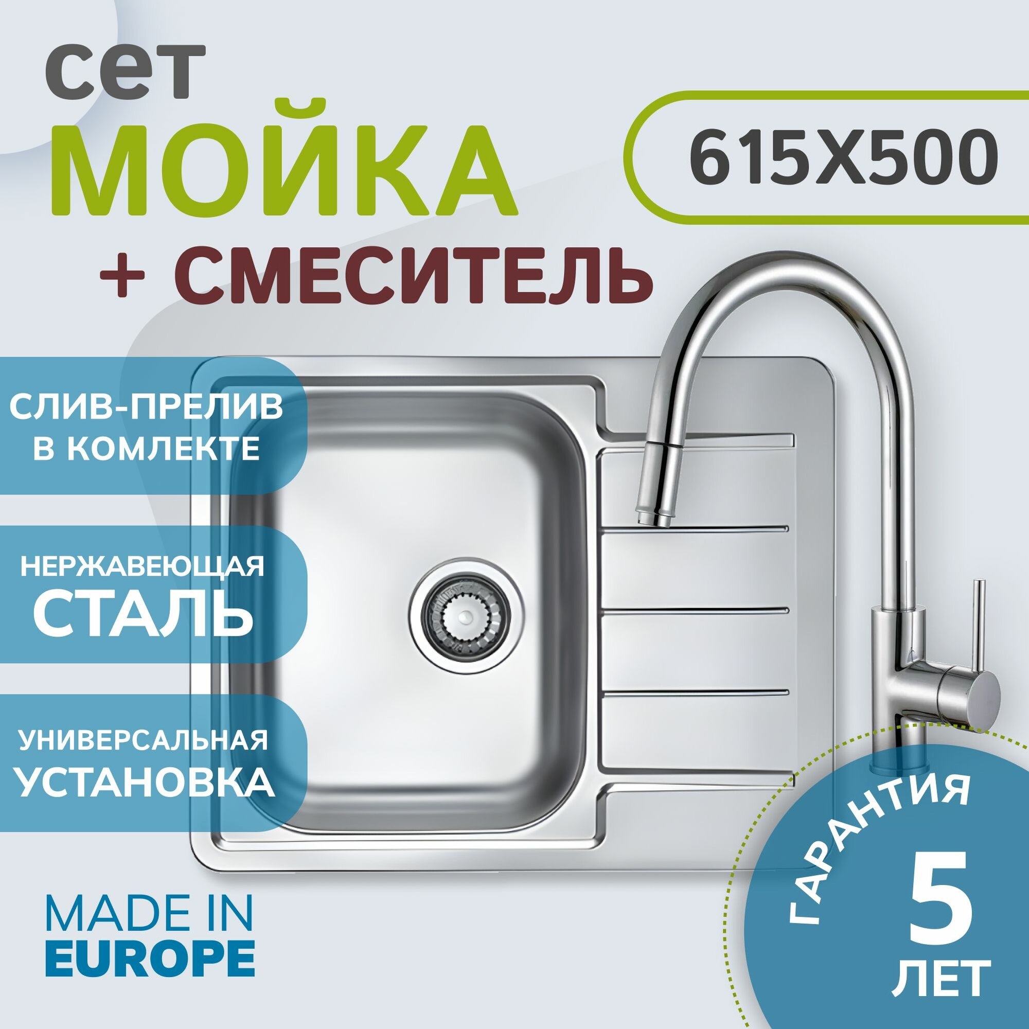 10 цен на СЕТ Мойка ALVEUS LINE 110 615x500 + Смеситель DELOS CHR