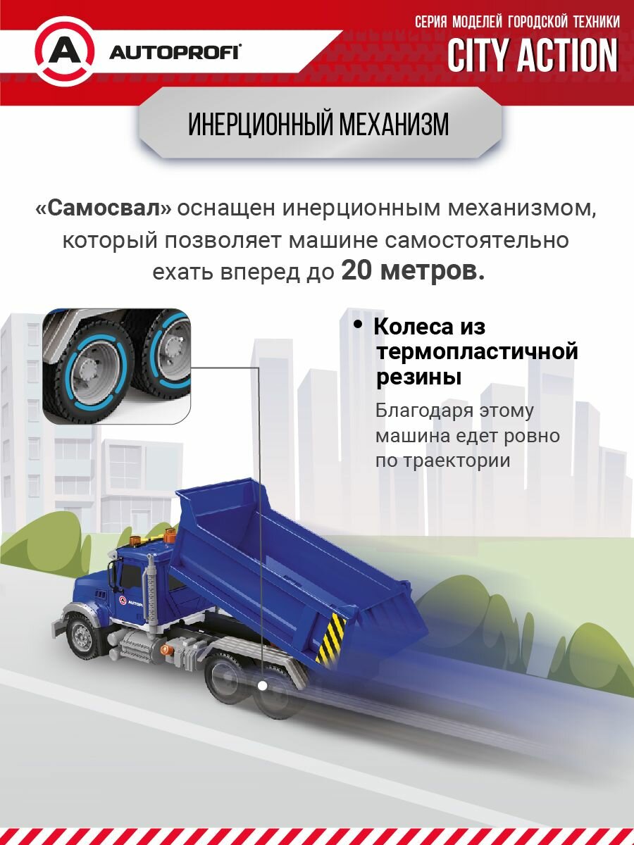 Машина инерционная самосвал серия CITY ACTION 35 см подвижные детали, со звуком и светом Цвет Синий AUTOPROFI CA-035/DUMP информация: