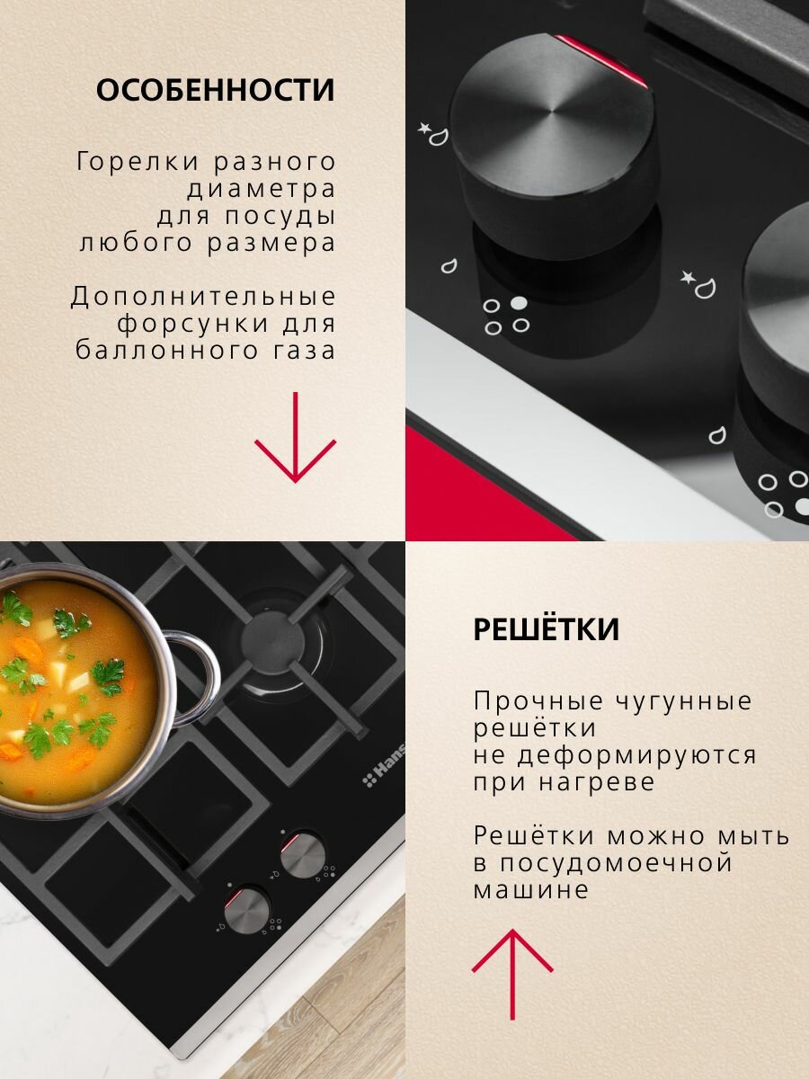 Отзывы на Газовая встраиваемая панель Hansa BHKS65135, 60 см, с газ контролем и автоподжигом, конфорка WOK, закаленное стекло, чугунные решетки
