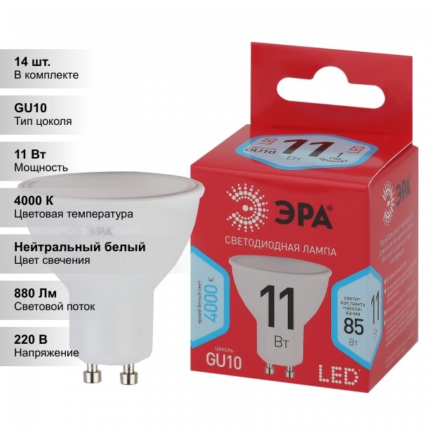 (14 шт.) Светодиодная лампочка ЭРА RED LINE LED MR16 11Вт-840-GU10 R информация: