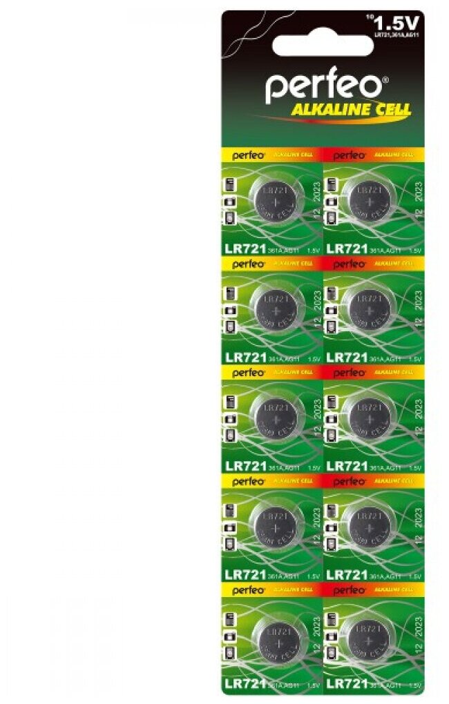 Батарейка дисковая щелочная (алкалиновая) тип AG11/LR721/LR58/361, Perfeo (10шт в блистере) информация: