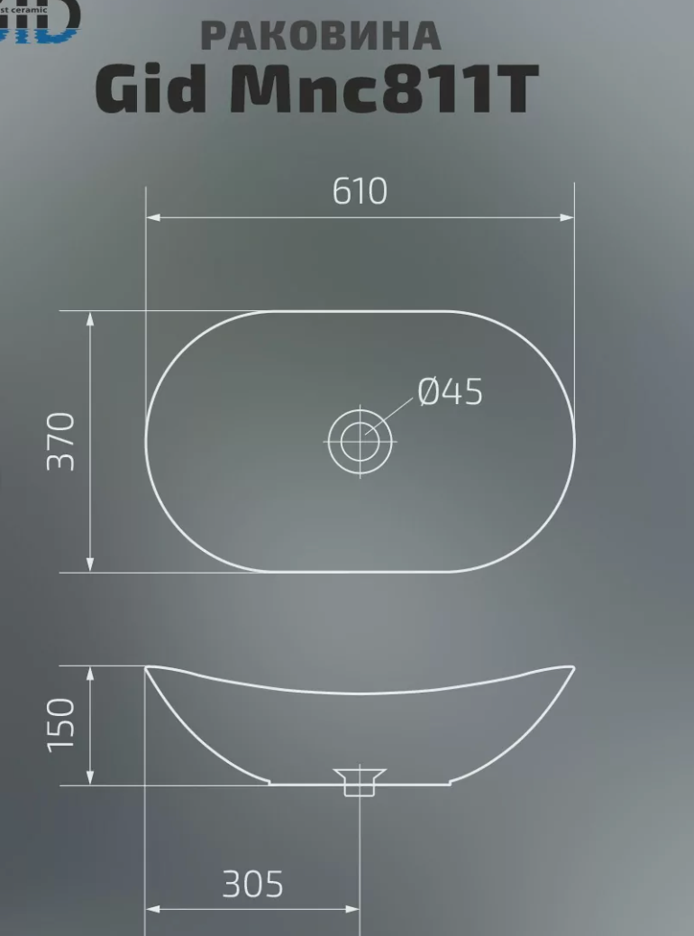 Раковина накладная (61х37) Gid Mnc811T 19 558 ₽