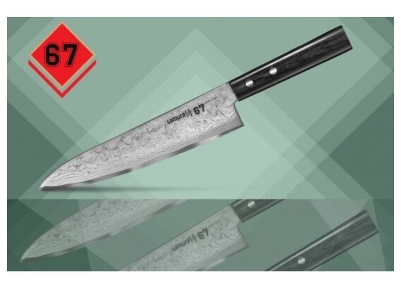 Отзывы на Нож кухонный Шеф Samura 67 DAMASCUS, дамасская сталь/микарта, 208 мм (SD67-0085M/K)